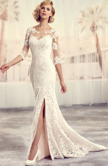 Noble lace long sleeve sheath wedding dress bohemian beach bridal gowns custom. Bateau lace long sleeve sheath chiffon wedding dress with sweep train. | vestidos de novia luxury wedding dress sheath lace beads bridal gown long sleeve. Apart from the intricate design, the material, as well as the hue of the dress, stand out too. This elongating sleeve style dresses up plain gowns and grounds embellished ones for a look that makes a beautiful impact.